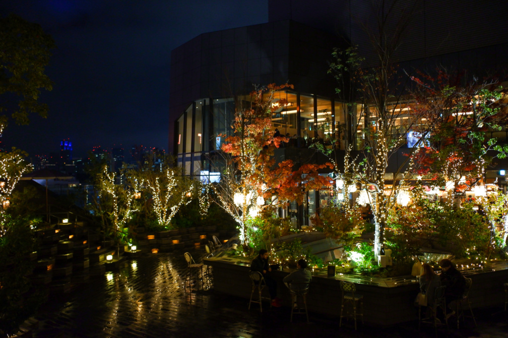 屋外のデッキ席からは渋谷方面のビル群が綺麗。