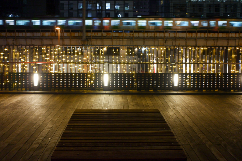行き交う電車とイルミの共演が鑑賞可。