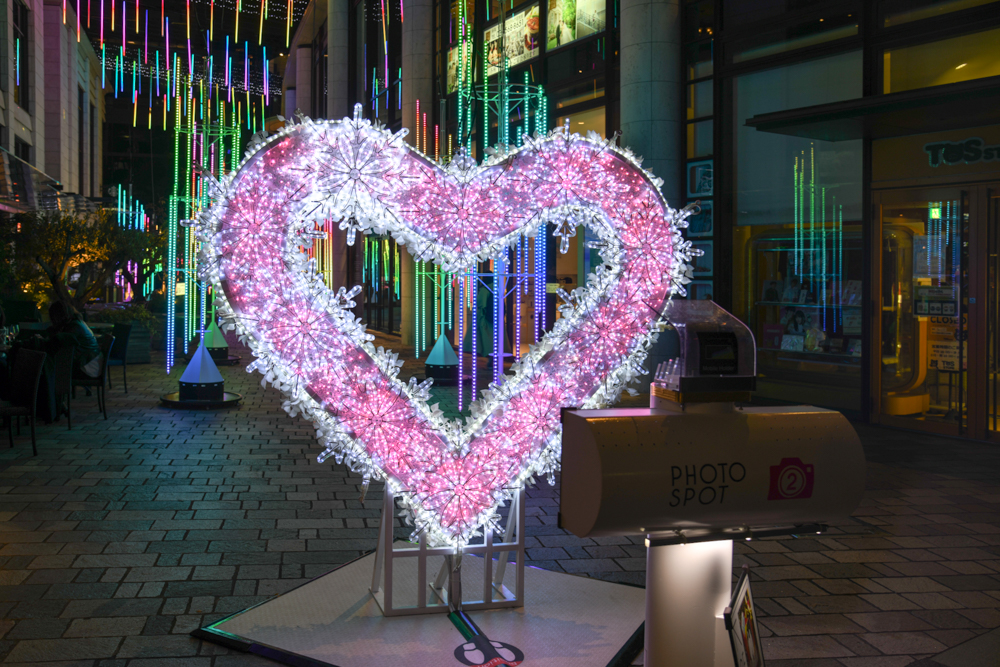子供のかわいい動画に比べたら、きっと、それくらいの交換レートじゃないと釣り合わない。…とはいえ、絶景みたいな風景はそうそう簡単に見つかるものじゃないし、動物園フォトばかりというのもネタ切れになるのは否めない。そういうわけで最近は彼女の娘ちゃんに喜んでもらうことをモチベーションにしながら、近所のイルミネーションを撮りに夜ごと外へ出かけているのであ〜る。