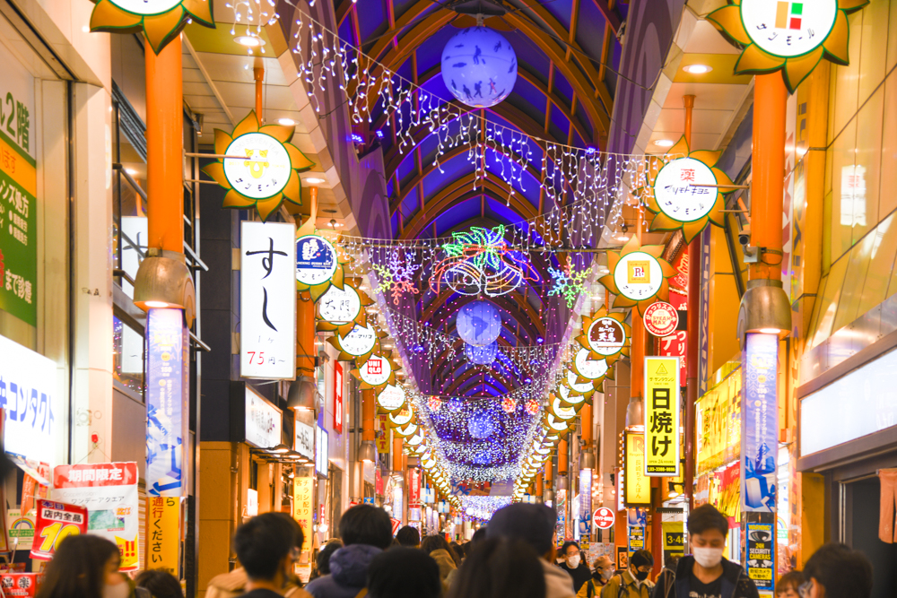たくさんの人が行き交うアーケードに