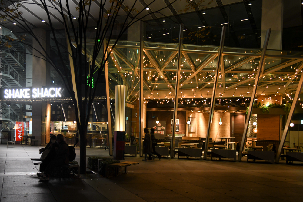 グラスと灯りの融合で輝度は都内でも随一。
